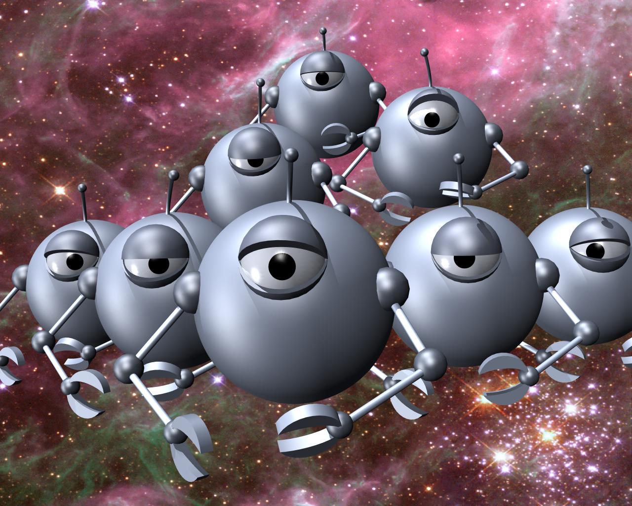 A flock of "Spanners", my trusty helper-bots, out for a stroll in the Tarantula nebula.
